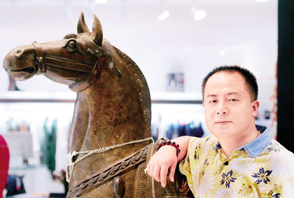 今年年初,陳鋼的第一家服飾店熱熱鬧鬧地開業(yè)了,慶賀花籃一直擺到了商場大門口,讓人誤以為是商場開業(yè)。店門口立著兩匹銅馬,店內(nèi)衣、帽、鞋、包、太陽鏡、皮帶、金銀首飾一應(yīng)俱全。
