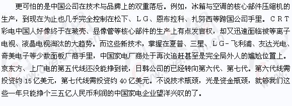 家電業是很多國人引以為傲并時常作為改革開放英明決策例證的行業,但現在情況很不妙。經過這些年與外國公司的競爭,這個我們曾經以為已經十拿九穩的行業,在很多方面,我們與國外公司的差距看起來不是更小而是更大了。