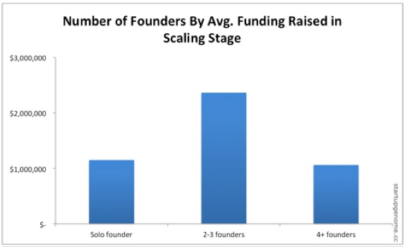 ● 單獨立創始人比2-3人的創始團隊平均少籌集到50%的資金。一個原因是在籌資期間,創始人要兼顧產品,商業和籌資,精力必然分散。