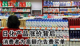 日化漲價背后:消費者為廣告埋單 寶潔、聯合利華等日化巨頭將于下月集中漲價,中小日化企業搶搭漲價“便車”現象,又引起了部分地區的消費者開始囤貨。 只要注意當前漲價的企業或者行業,均把提價理由歸咎于原材料成本上升,企業壓力過重。但也有業內人士認為日化企業的這一理由有些站不住腳,因為有些不同種類的日化產品原材料價格在最終售價上所占的比例并不一樣,有些僅占不到四成,而與之形成對比的是,日化企業的營銷費用卻占據了成本的近六成,而且還在逐年增長。 因此,日化企業的漲價其實是讓消費者為它們日益增加的高營銷費用埋單。 高額廣告支出 對于本輪日化產品漲價的原因,寶潔、聯合利華等多家日化企業解釋是,原材料價格的上漲。聯合利華大中國區副總裁曾錫文對《第一財經(微博)日報》分析說:“日化行業所用的原料大部分是石油的副產品,目前國際油價已從去年的50美元/桶漲到了現在的100多美元/桶,石化類產品價格上漲了60%,植物油價格上漲了50%~60%,無機鹽價格上漲了40%~50%,而運輸物流成本也比去年同期上漲了不少。” “成本上升只是漲價的部分因素!痹谥鐕栈髽I工作過的凌雁管理咨詢公司首席咨詢師林岳告訴記者,其實,不同種類的日化產品原材料價格在最終售價上所占比例不一樣,比如洗衣粉可能占到60%~70%,洗衣液、牙膏、洗發水等原材料成本占30%~40%。