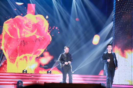 傅琰東登臺,讓大家再一次見證了奇跡,現場在臺下邀請了一個小學生助演,只見他做一把金幣,有一把金幣,讓大家應接不暇,兒童勁歌熱舞的串燒,更把晚會推向了高潮,臺上臺下熱鬧非凡,互為一體。農民工已經成為國家建設中不可替代的有生力量,新生代農民工有活力、有思想,用勤勞換來最美的光榮綻放,家是人生的航船,事業是風帆,幸福的人生就是立業有成家,歌曲串燒孫維良演唱的《立業成家》,高安演唱的《幸福等你來》、朱麗婷《熱熱鬧鬧》又一次把大家帶到了歡樂的海洋。
