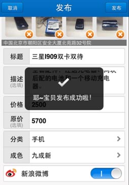 用戶可根據(jù)淘身邊提供的發(fā)布功能,快速把閑置物品拍照發(fā)布出去。并可以同步給新浪微博上的好友。淘身邊此舉,極大的降低了買賣商品的門檻。30秒就能讓一個(gè)普通消費(fèi)者變成淘身邊賣家。但是此舉,并沒有增加信用風(fēng)險(xiǎn),基于新浪微博的人際關(guān)系和支付寶的實(shí)名制認(rèn)證體系。淘身邊已經(jīng)有了完整的用戶信用體系支撐交易。