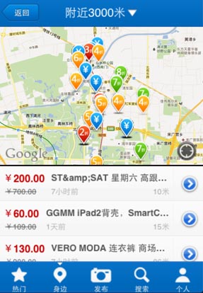 淘身邊也可以搜索周圍的閑置物品。并提供在線交易和線下交易兩種方式。對于二手物品或者閑置物品,商品的屬性非常不統(tǒng)一,幾乎都是非標(biāo)準(zhǔn)化的產(chǎn)品。線下的交易對整個(gè)交易環(huán)節(jié)的補(bǔ)充非常的重要,彌補(bǔ)了線上交易中消費(fèi)體驗(yàn)的不足。而此功能,也為淘身邊日后的發(fā)力儲備了巨大的能量。