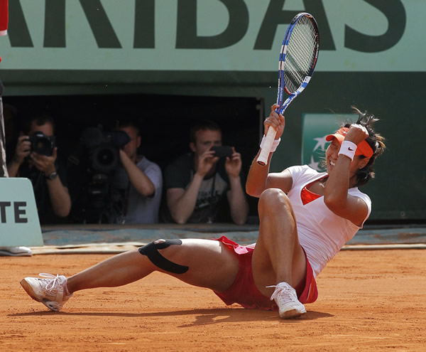 李娜法網(wǎng)捧杯創(chuàng)造歷史 躺在泥地忘情慶祝